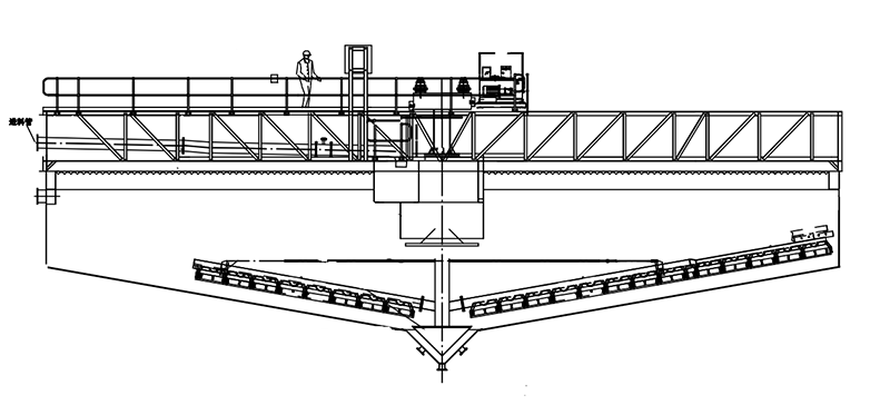 5、采用中心倒錐型集泥斗,對排料二次壓縮,排料濃度更高、更穩定;