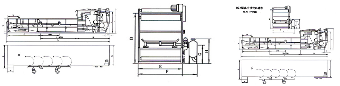 真空帶式壓濾機的結構主要由橡膠濾帶、真空箱、驅動輥、膠帶支承臺、進料斗、濾布調偏裝置、濾布洗滌裝置和機架等部件組成。